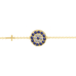 Υπέροχο Χειροποίητο Βραχιόλι Μάτι με σταυρουδάκι και ημιπολύτιμες μπλε και λευκές πέτρες ζιργκόν. Το μέταλλο είναι Ασήμι 925 Επιχρυσωμένο με Ροζ Χρυσό Κ24.