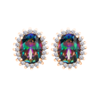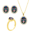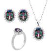 Υπέροχο Χειροποίητο Σετ Ροζέτα οβάλ με ημιπολύτιμες ιριδίζουν πέτρες ζιργκόν και λευκές μικρές πέτρες ζιργκόν. Το μέταλλο είναι Ασήμι 925 Επιχρυσωμένο με Ροζ Χρυσό Κ24. Αποτελείται από Κολιέ, Σκουλαρίκια και Δαχτυλίδι. Φοριέται σε οποιαδήποτε περίσταση.