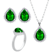 Χειροποίητο Σετ Ροζέτα σε σχήμα σταγόνα με ημιπολύτιμες πράσινες πέτρες ζιργκόν και λευκές μικρές πέτρες ζιργκόν. Το μέταλλο είναι Ασήμι 925 Επιχρυσωμένο με Ροζ Χρυσό Κ24. Αποτελείται από Κολιέ, Σκουλαρίκια και Δαχτυλίδι. Φοριέται σε οποιαδήποτε περίσταση.