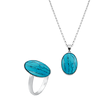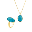 Χειροποίητό Σετ οβάλ με ορυκτές πέτρες Τουρκουάζ από Ασήμι 925 Επιχρυσωμένο με Ροζ Χρυσό Κ24. Αποτελείται από Κολιέ και Δαχτυλίδι. Μπορούν να φορεθούν σε οποιαδήποτε περίσταση δίνοντας ιδιαίτερη λάμψη.