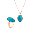 Χειροποίητό Σετ οβάλ με ορυκτές πέτρες Τουρκουάζ από Ασήμι 925 Επιχρυσωμένο με Κ24. Αποτελείται από Κολιέ και Δαχτυλίδι. Μπορούν να φορεθούν σε οποιαδήποτε περίσταση δίνοντας ιδιαίτερη λάμψη.