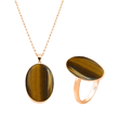 5165: Σετ Κολιέ και Δαχτυλίδι με ορυκτές πέτρες Μάτι της Τίγρης από Ασήμι 925 Επιχρυσωμένο με Κ24