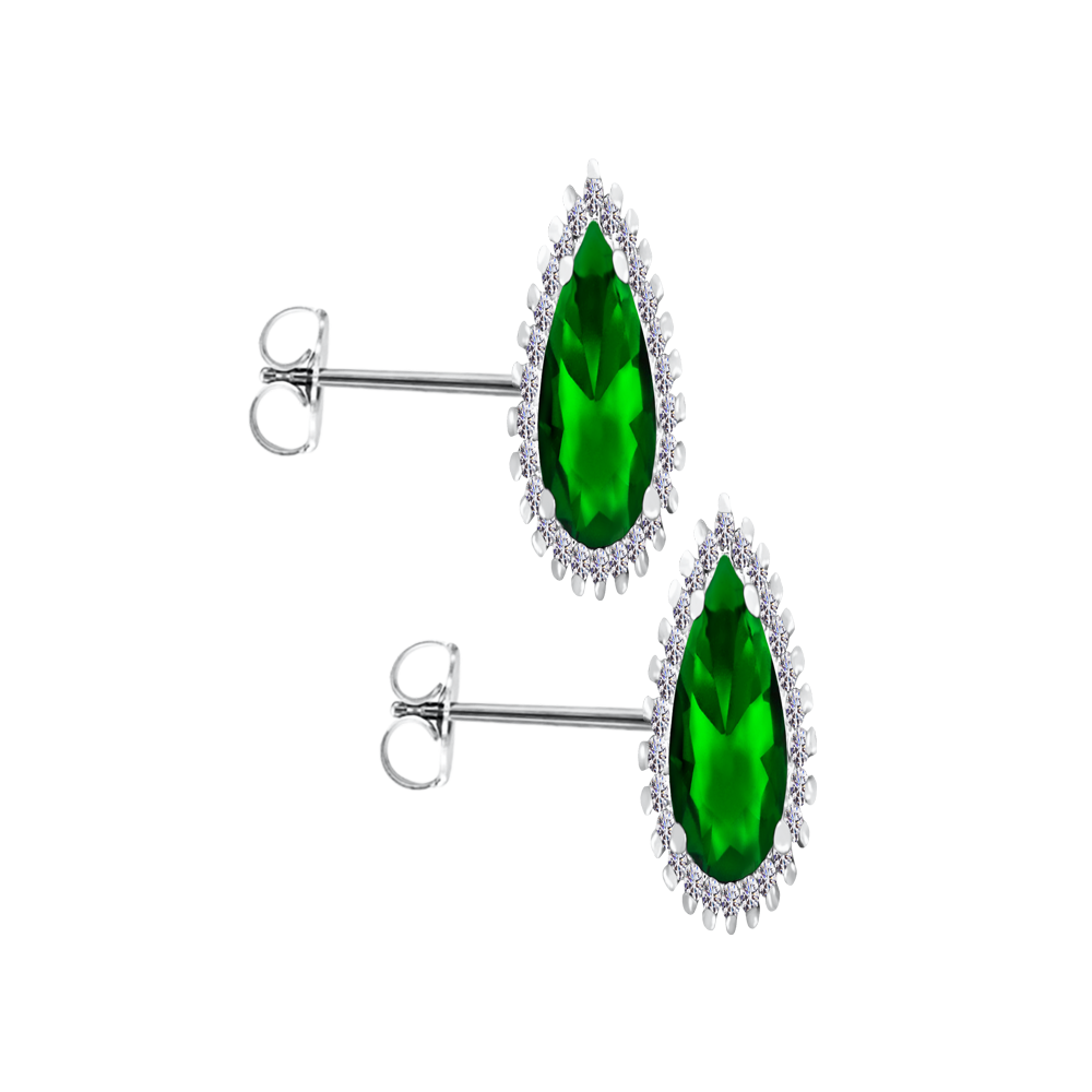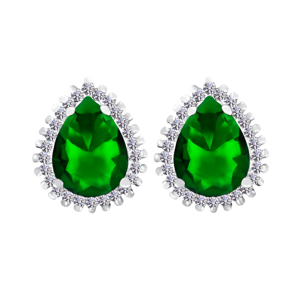5015: Σκουλαρίκια Ροζέτα με πράσινες πέτρες zircon από Ασήμι 925 Επιπλατινωμένα