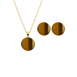 5161: Σκουλαρίκια καρφωτά με ορυκτές πέτρες Μάτι της Τίγρης από Ασήμι 925 Επιχρυσωμένα με Κ24