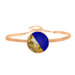 Μοναδικό χειροποίητο Βραχιόλι με σμάλτο, φύλλα χρυσού και υγρό γυαλί από μέταλλο ορείχαλκου. Χρώμα μέταλλου: Επαργυρωμένο. Φινίρισμα: Σαγρέ ματ. Χρώμα Σμάλτου: Μπλε και φύλλα χρυσού. Το Βραχιόλι αυξομειώνεται από την αλυσίδα. Το χρώμα Μπλε Συμβολίζει την εμπιστοσύνη την πίστη και αυτοπεποίθηση. Φοριέται όλες τις Εποχές και ταιριάζει με Καθημερινό και Βραδινό ντύσιμο.