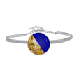 Μοναδικό χειροποίητο Βραχιόλι με σμάλτο, φύλλα χρυσού και υγρό γυαλί από μέταλλο ορείχαλκου. Χρώμα μέταλλου: Επιχρυσωμένο. Φινίρισμα: Σαγρέ ματ. Χρώμα Σμάλτου: Μπλε και φύλλα χρυσού. Το Βραχιόλι αυξομειώνεται από την αλυσίδα. Το χρώμα Μπλε Συμβολίζει την εμπιστοσύνη την πίστη και αυτοπεποίθηση. Φοριέται όλες τις Εποχές και ταιριάζει με Καθημερινό και Βραδινό ντύσιμο.