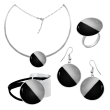 Μοναδικό χειροποίητο Βραχιόλι στρογγυλό από μέταλλο ορείχαλκου με σμάλτο και υγρό γυαλί. Φινίρισμα: Σαγρέ ματ. Χρώμα μέταλλου: Επαργυρωμένο. Χρώμα Σμάλτου: Ασημί και μαύρο. το μέγεθος αυξομειώνεται από το μαύρο κορδόνι. Είναι το κομμάτι του Σετ Αισιοδοξία. Ένα σχέδιο που συμβολιζει την Ηρεμία τη Γλυκύτητα και την Ειλικρίνεια που ξεχωρίζει μια γυναίκα. Φοριέται όλες τις Εποχές και ταιριάζει με Καθημερινό, Βραδινό και Επίσημο ντύσιμο.