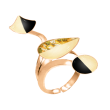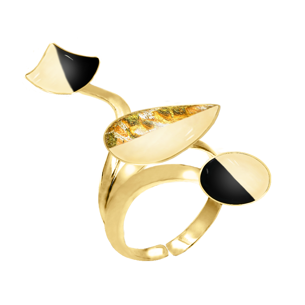 D56: Φανταστικό Δαχτυλίδι με μπεζ και μαύρο σμάλτο Επιχρυσωμένο (Σμάλτο και Υγρό Γυαλί)