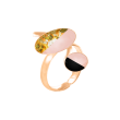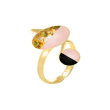 Μοναδικό χειροποίητο Δαχτυλίδι από μέταλλο ορείχαλκου με σμάλτο, φύλλα χρυσού και υγρό γυαλί. Χρώμα Σμάλτου: Ροζ, μαύρο και φύλλα χρυσού. Το μέγεθος αυξομειώνεται. Είναι το κομμάτι του Σετ Φαντασία. Το ροζ χρώμα Συμβολίζει συναισθηματική ισορροπία και ζωηρή φαντασία, ενώ ταυτόχρονα δημιουργούν μια χαρούμενη και αισιόδοξη διάθεση. Φοριέται όλες τις Εποχές και ταιριάζει με Βραδινό και Επίσημο ντύσιμο.