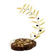 Χειροποίητο Κλαδί ελιάς από μέταλλο ορείχαλκου, επαργυρωμένο. Η βάση είναι από φυσικό δέντρο ελιάς περασμένη με ειδικό βερνίκι και φύλλα χρυσού.