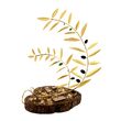 Χειροποίητο Κλαδί ελιάς από μέταλλο ορείχαλκου, ροζ χρυσό. Η βάση είναι από φυσικό δέντρο ελιάς περασμένη με ειδικό βερνίκι και φύλλα χρυσού.