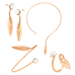 Χειροποίητο Κολιέ σε σχήμα φύλλα ελιάς με πέρλα από μέταλλο ορείχαλκου ροζ χρυσό.