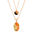 Μοναδικό χειροποίητο Κολιέ με σμάλτο, φύλλα χρυσού και υγρό γυαλί από μέταλλο ορείχαλκου με ατσάλινη διπλή αλυσίδα. Φινίρισμα: Γυαλιστερό. Χρώμα μέταλλου: Επιχρυσωμένο. Χρώμα Σμάλτου: Ροδακινί, μαύρο και φύλλα χρυσού. Το κολιέ αυξομειώνεται από την αλυσίδα. Ένα σχέδιο εμπνευσμένο από την επιτυχία, χαρά και ενθουσιασμού. Φοριέται όλες τις Εποχές και ταιριάζει με Καθημερινό και Βραδινό ντύσιμο.