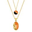 Μοναδικό χειροποίητο Κολιέ με σμάλτο, φύλλα χρυσού και υγρό γυαλί από μέταλλο ορείχαλκου με ατσάλινη διπλή αλυσίδα. Φινίρισμα: Γυαλιστερό. Χρώμα μετάλλου: Ροζ χρυσό. Χρώμα Σμάλτου: Ροδακινί, μαύρο και φύλλα χρυσού. Το κολιέ αυξομειώνεται από την αλυσίδα. Ένα σχέδιο εμπνευσμένο από την επιτυχία, χαρά και ενθουσιασμού. Φοριέται όλες τις Εποχές και ταιριάζει με Καθημερινό και Βραδινό ντύσιμο.
