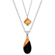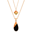 Μοναδικό χειροποίητο Κολιέ με σμάλτο, φύλλα χρυσού και υγρό γυαλί από μέταλλο ορείχαλκου με ατσάλινη διπλοί αλυσίδα. Φινίρισμα: Γυαλιστερό. Χρώμα μέταλλου: Επιχρυσωμένο. Χρώμα Σμάλτου: Ροδακινί, μαύρο και φύλλα χρυσού. Το κολιέ αυξομειώνεται από την αλυσίδα. Τα φύλλα χρυσού συμβολίζουν τον Ήλιο το οποιο θεωρείται χρώμα ηλιακό με ιδιαίτερη δημιουργική και θετική ακτινοβολία στο περιβάλλον. Φοριέται όλες τις Εποχές και ταιριάζει με Καθημερινό και Βραδινό ντύσιμο.