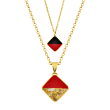 Μοναδικό χειροποίητο Κολιέ με σμάλτο, φύλλα χρυσού και υγρό γυαλί από μέταλλο ορείχαλκου με ατσάλινη διπλοί αλυσίδα. Φινίρισμα: Γυαλιστερό. Χρώμα μέταλλου: Επαργυρωμένο. Χρώμα Σμάλτου: Κόκκινο, μαύρο και φύλλα χρυσού. Το κολιέ αυξομειώνεται από την αλυσίδα. Είναι ένα σχέδιο εμπνευσμένο από τον Έρωτας το Παθός την Εξουσία και την Αγάπη. Φοριέται όλες τις Εποχές και ταιριάζει με Καθημερινό και Βραδινό ντύσιμο.