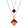 Μοναδικό χειροποίητο Κολιέ με σμάλτο, φύλλα χρυσού και υγρό γυαλί από μέταλλο ορείχαλκου με ατσάλινη διπλοί αλυσίδα. Φινίρισμα: Γυαλιστερό. Χρώμα μέταλλου: Επιχρυσωμένο. Χρώμα Σμάλτου: Κόκκινο, μαύρο και φύλλα χρυσού. Το κολιέ αυξομειώνεται από την αλυσίδα. Είναι ένα σχέδιο εμπνευσμένο από τον Έρωτας το Παθός την Εξουσία και την Αγάπη. Φοριέται όλες τις Εποχές και ταιριάζει με Καθημερινό και Βραδινό ντύσιμο.