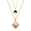 4Ν61: Υπέροχο Χειροποίητο Κολιέ με διπλοί αλυσίδα και ροζ σμάλτο Επιχρυσωμένο (Σμάλτο και Υγρό Γυαλί)
