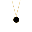 Χειροποίητο Κολιέ με στρογγυλό μοτίφ και ατσάλινη αλυσίδα από μέταλλο ορείχαλκου με σμάλτο και υγρό γυαλί. Φινίρισμα: Γυαλιστερό. Χρώμα μέταλλου: Ροζ χρυσό. Χρώμα Σμάλτου: Μαύρο. Φοριέται όλες τις Εποχές και ταιριάζει με Καθημερινό και Βραδινό ντύσιμο.