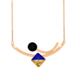 Υπέροχο χειροποίητο Κολιέ με σμάλτο, φύλλα χρυσού και υγρό γυαλί από μέταλλο ορείχαλκου με ατσάλινη αλυσίδα. Φινίρισμα: Γυαλιστερό. Χρώμα μέταλλου: Επιχρυσωμένο. Χρώμα Σμάλτου: Μπλε, μαύρο και φύλλα χρυσού. Το κολιέ αυξομειώνεται από την αλυσίδα. Το μπλε χρώμα Συμβολίζει την καθαρή σκέψη και την καθαρότητα της ψυχής. Φοριέται όλες τις Εποχές και ταιριάζει με Καθημερινό, Βραδινό και Επίσημο ντύσιμο.