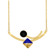 Υπέροχο χειροποίητο Κολιέ με σμάλτο, φύλλα χρυσού και υγρό γυαλί από μέταλλο ορείχαλκου με ατσάλινη αλυσίδα. Φινίρισμα: Γυαλιστερό. Χρώμα μέταλλου: Ροζ χρυσό. Χρώμα Σμάλτου: Μπλε, μαύρο και φύλλα χρυσού. Το κολιέ αυξομειώνεται από την αλυσίδα. Το μπλε χρώμα Συμβολίζει την καθαρή σκέψη και την καθαρότητα της ψυχής. Φοριέται όλες τις Εποχές και ταιριάζει με Καθημερινό, Βραδινό και Επίσημο ντύσιμο.