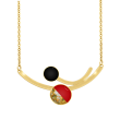 Υπέροχο χειροποίητο Κολιέ με σμάλτο, φύλλα χρυσού και υγρό γυαλί από μέταλλο ορείχαλκου με ατσάλινη αλυσίδα. Φινίρισμα: Γυαλιστερό. Χρώμα μέταλλου: Επαργυρωμένο. Χρώμα Σμάλτου: Κόκκινο, μαύρο και φύλλα χρυσού. Το κολιέ αυξομειώνεται από την αλυσίδα. Το κόκκινο είναι το κατ’ εξοχήν χρώμα του ερωτικού πάθους το χρώμα της φωτιάς και της δύναμης. Φοριέται όλες τις Εποχές και ταιριάζει με Καθημερινό, Βραδινό και Επίσημο ντύσιμο.