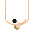 Υπέροχο χειροποίητο Κολιέ με σμάλτο, φύλλα χρυσού και υγρό γυαλί από μέταλλο ορείχαλκου με ατσάλινη αλυσίδα. Φινίρισμα: Γυαλιστερό. Χρώμα μέταλλου: Επαργυρωμένο. Χρώμα Σμάλτου: Ροζ, μαύρο και φύλλα χρυσού. Το κολιέ αυξομειώνεται από την αλυσίδα. Το ροζ χρώμα Συμβολίζει συναισθηματική ισορροπία και ζωηρή φαντασία. Φοριέται όλες τις Εποχές και ταιριάζει με Καθημερινό, Βραδινό και Επίσημο ντύσιμο.