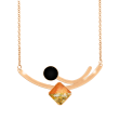 Υπέροχο χειροποίητο Κολιέ με σμάλτο, φύλλα χρυσού και υγρό γυαλί από μέταλλο ορείχαλκου με ατσάλινη αλυσίδα. Φινίρισμα: Γυαλιστερό. Χρώμα μέταλλου: Επιχρυσωμένο. Χρώμα Σμάλτου: Ροδακινί, μαύρο και φύλλα χρυσού. Το κολιέ αυξομειώνεται από την αλυσίδα. Ένα σχέδιο που Συμβολίζει την ισορροπία, ενεργεία και δημιουργία. Φοριέται όλες τις Εποχές και ταιριάζει με Καθημερινό, Βραδινό και Επίσημο ντύσιμο.