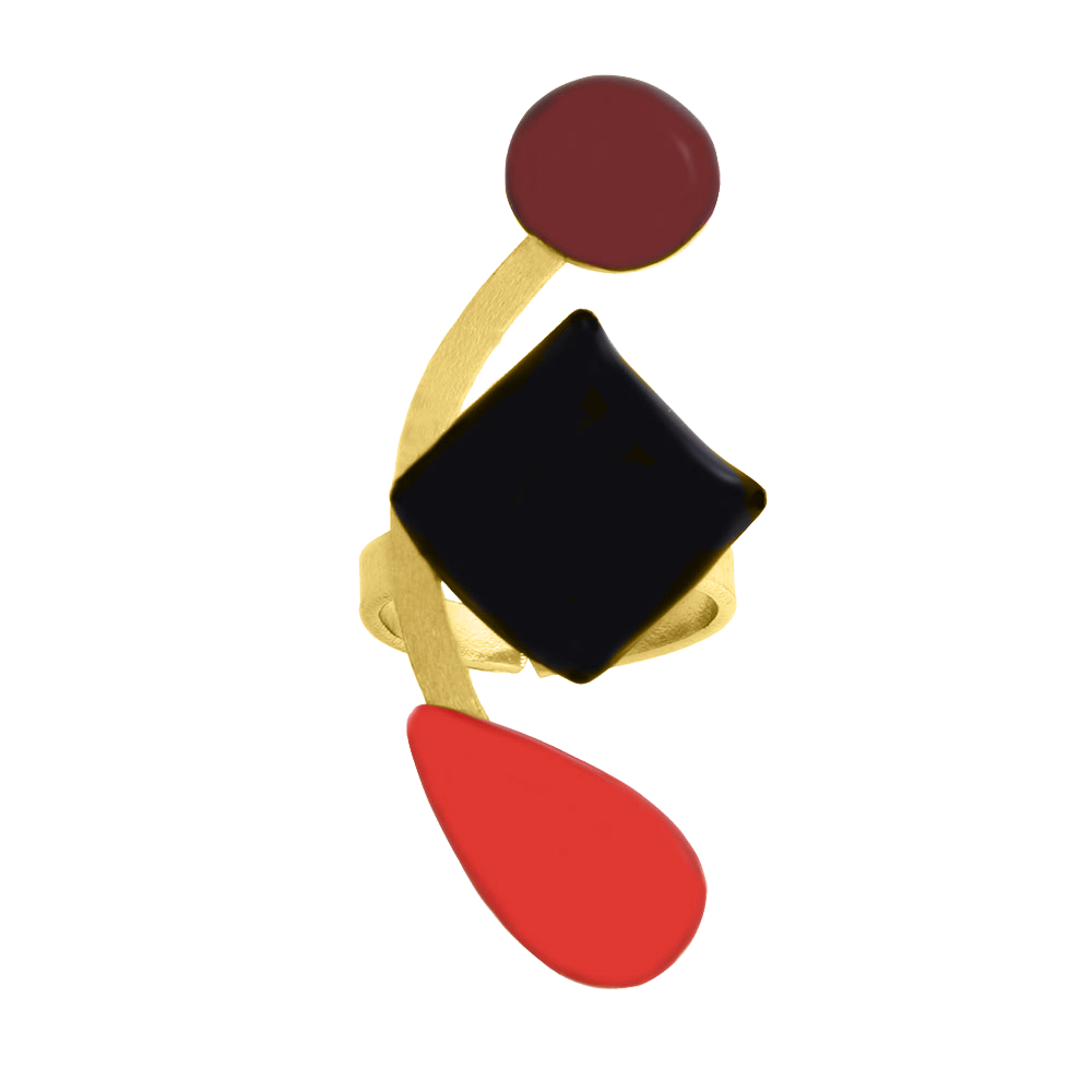 B950: Δαχτυλίδι με καφέ κόκκινο και μαύρο σμάλτο Επιχρυσωμένο (Σμάλτο και Υγρό Γυαλί)