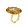 Υπέροχο χειροποίητο Δαχτυλίδι από μέταλλο ορείχαλκου με φύλλα Χρυσού και υγρό γυαλί. Φινίρισμα: Γυαλιστερό. Χρώμα μέταλλου: Ροζ χρυσό. Χρώμα Σμάλτου: φύλλα Χρυσού. Το μέγεθος αυξομειώνεται. Νο 47 έως 63. Φοριέται όλες τις Εποχές και ταιριάζει με Καθημερινό, Βραδινό και Επίσημο ντύσιμο.