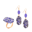Υπέροχο χειροποίητο Σετ από μέταλλο ορείχαλκου με σμάλτο και υγρό γυαλί. Φινίρισμα: Γυαλιστερό. Χρώμα μέταλλου: Επιχρυσωμένο. Χρώμα Σμάλτου: Μαύρο, μοβ και μπεζ. Αποτελείται από σκουλαρίκια και δαχτυλίδι. Ένα σχέδιο εμπνευσμένο από τον Ρομαντισμός Αριστοκρατία την σταθερότητα και δύναμη. Φοριέται Καλοκαιρινές Εποχές και ταιριάζει με Καθημερινό, Βραδινό και Επίσημο ντύσιμο.