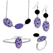 Υπέροχο χειροποίητο Σετ από μέταλλο ορείχαλκου με σμάλτο και υγρό γυαλί. Φινίρισμα: Γυαλιστερό και σαγρέ ματ. Χρώμα μέταλλου: Ροζ χρυσό. Χρώμα Σμάλτου: Μαύρο μοβ και μπεζ. Αποτελείται από κολιέ, σκουλαρίκια, βραχιόλι και δαχτυλίδι. Ένα σχέδιο εμπνευσμένο από τον Ρομαντισμός Αριστοκρατία και σταθερότητα. Συμβολίζει τη δύναμη και την ικανότητα, την πολυτέλεια και τη φιλοδοξία. Φοριέται Καλοκαιρινές Εποχές και ταιριάζει με Καθημερινό, Βραδινό και Επίσημο ντύσιμο.