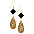 Υπέροχα χειροποίητα Σκουλαρίκια από μέταλλο ορείχαλκου με φύλλα χρυσού, σμάλτο και υγρό γυαλί. Φινίρισμα: Γυαλιστερό. Χρώμα μέταλλου: Επαργυρωμένο. Χρώμα Σμάλτου: Μαύρο και Φύλλα χρυσού. Φοριέται όλες τις Εποχές και ταιριάζουν με Καθημερινό και Βραδινό ντύσιμο.