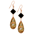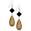 Υπέροχα χειροποίητα Σκουλαρίκια από μέταλλο ορείχαλκου με φύλλα χρυσού, σμάλτο και υγρό γυαλί. Φινίρισμα: Γυαλιστερό. Χρώμα μέταλλου: Επιχρυσωμένο. Χρώμα Σμάλτου: Μαύρο και Φύλλα χρυσού. Φοριέται όλες τις Εποχές και ταιριάζουν με Καθημερινό και Βραδινό ντύσιμο.
