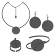 Χειροποίητο Σετ στρογγυλό από μέταλλο ορείχαλκου επαργυρωμένο, σαγρέ και σφυρήλατο. Αποτελείται από κολιέ, σκουλαρίκια, βραχιόλι και δαχτυλίδι.