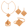 Χειροποίητο Σετ τετράγωνο από μέταλλο ορείχαλκου επαργυρωμένο, σαγρέ και σφυρήλατο. Αποτελείται από κολιέ, σκουλαρίκια, βραχιόλι και δαχτυλίδι.