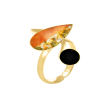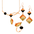 Μοναδικό χειροποίητο Σετ με σμάλτο, φύλλα χρυσού και υγρό γυαλί από μέταλλο ορείχαλκου. Χρώμα μέταλλου: Επιχρυσωμένο. Φινίρισμα: Γυαλιστερό. Χρώμα Σμάλτου: Ροδακινί, μαύρο και φύλλα χρυσού. Αποτελείται από κολιέ, σκουλαρίκια και δαχτυλίδι. Ένα σχέδιο που Συμβολίζει την ισορροπία, ενεργεία και δημιουργία. Φοριέται όλες τις Εποχές και ταιριάζει με Βραδινό και Επίσημο ντύσιμο.