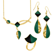 Μοναδικό χειροποίητο Σετ με σμάλτο, φύλλα χρυσού και υγρό γυαλί από μέταλλο ορείχαλκου. Χρώμα μέταλλου: Επαργυρωμένο. Φινίρισμα: Γυαλιστερό. Χρώμα Σμάλτου: Πράσινο, μαύρο και φύλλα χρυσού. Αποτελείται από κολιέ, σκουλαρίκια και δαχτυλίδι. Το πράσινο χρώμα Συμβολίζει την ελπίδα για ζωή την αναγέννηση και την ανάσταση. Είναι το χρώμα της φύσης και της ισορροπίας. Φοριέται όλες τις Εποχές και ταιριάζει με Βραδινό και Επίσημο ντύσιμο.