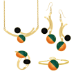 Μοναδικό χειροποίητο Σετ με σμάλτο και υγρό γυαλί από μέταλλο ορείχαλκου. Χρώμα μέταλλου: Επαργυρωμένο. Φινίρισμα: Γυαλιστερό. Χρώμα Σμάλτου: Πράσινο, μαύρο και ροδακινί. Αποτελείται από κολιέ, σκουλαρίκια, βραχιόλι και δαχτυλίδι. Το πράσινο χρώμα Συμβολίζει την ελπίδα για ζωή και ευημερία. Το ροδακινί χρώμα Συμβολίζει την ισορροπία, ενεργεία και δημιουργία. Φοριέται όλες τις Εποχές και ταιριάζει με Καθημερινό, Βραδινό και Επίσημο ντύσιμο.