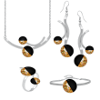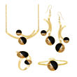 Μοναδικό χειροποίητο Σετ με σμάλτο, φύλλα χρυσού και υγρό γυαλί από μέταλλο ορείχαλκου. Χρώμα μέταλλου: Ροζ χρυσό. Φινίρισμα: Γυαλιστερό. Χρώμα Σμάλτου: Μαύρο και φύλλα χρυσού. Αποτελείται από κολιέ, σκουλαρίκια, βραχιόλι και δαχτυλίδι. Το μαύρο χρώμα Συμβολίζει δύναμη, κομψότητα, μυστήριο και σοβαρότητα. Επίσης εκφράζει την πειθαρχία. Φοριέται όλες τις Εποχές και ταιριάζει με Καθημερινό, Βραδινό και Επίσημο ντύσιμο.