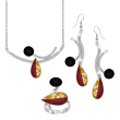 Υπέροχο χειροποίητο Σετ με σμάλτο, φύλλα χρυσού και υγρό γυαλί από μέταλλο ορείχαλκου. Χρώμα μέταλλου: Ροζ χρυσό. Φινίρισμα: Γυαλιστερό. Χρώμα Σμάλτου: Καφέ, μαύρο και φύλλα χρυσού. Αποτελείται από κολιέ, σκουλαρίκια και δαχτυλίδι. Το καφέ χρώμα Συμβολίζει αξιοπιστία θηλυκότητα, τρυφερότητα. Η επιλογή του σημαίνει ότι: είστε πρακτικοί και σας αρέσει σταθερότητα. Φοριέται όλες τις Εποχές και ταιριάζει με Βραδινό και Επίσημο ντύσιμο.