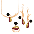 Υπέροχο χειροποίητο Σετ με σμάλτο, φύλλα χρυσού και υγρό γυαλί από μέταλλο ορείχαλκου. Χρώμα μέταλλου: Επαργυρωμένο. Φινίρισμα: Γυαλιστερό. Χρώμα Σμάλτου: Καφέ, μαύρο και φύλλα χρυσού. Αποτελείται από κολιέ, σκουλαρίκια και δαχτυλίδι. Το καφέ χρώμα Συμβολίζει αξιοπιστία θηλυκότητα, τρυφερότητα. Η επιλογή του σημαίνει ότι: είστε πρακτικοί και σας αρέσει σταθερότητα. Φοριέται όλες τις Εποχές και ταιριάζει με Βραδινό και Επίσημο ντύσιμο.