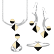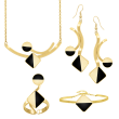 Υπέροχο χειροποίητο Σετ με σμάλτο και υγρό γυαλί από μέταλλο ορείχαλκου. Χρώμα μέταλλου: Ροζ χρυσό. Φινίρισμα: Γυαλιστερό. Χρώμα Σμάλτου: Μπεζ και μαύρο. Αποτελείται από κολιέ, σκουλαρίκια, Βραχιόλι και δαχτυλίδι. Το μπεζ χρώμα Συμβολίζει την καθαρότητα της ψυχής την υπέρτατη πίστη και ελπίδα. Χαρίζει διαύγεια και μας βοηθάει να απαλλαγούμε από τις αρνητικές σκέψεις. Το μαύρο εκφράζει την πειθαρχία. Φοριέται όλες τις Εποχές και ταιριάζει με Καθημερινό, Βραδινό και Επίσημο ντύσιμο.