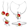 Μοναδικό Χειροποίητο Σετ με σμάλτο, φύλλα χρυσού και υγρό γυαλί από μέταλλο ορείχαλκου. Χρώμα μέταλλου: Ροζ χρυσό. Φινίρισμα: Σαγρέ ματ. Χρώμα Σμάλτου: Κόκκινο και φύλλα χρυσού. Αποτελείται από κολιέ, σκουλαρίκια, βραχιόλι και δαχτυλίδι. Είναι ένα σχέδιο εμπνευσμένο από τον Έρωτας το Παθός την Εξουσία την Αγάπη και το Ρομαντισμό. Φοριέται όλες τις Εποχές και ταιριάζει με Βραδινό και Επίσημο ντύσιμο.