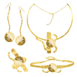 Μοναδικό Χειροποίητο Σετ με σμάλτο, φύλλα χρυσού και υγρό γυαλί από μέταλλο ορείχαλκου. Χρώμα μέταλλου: Επαργυρωμένο. Φινίρισμα: Σαγρέ ματ. Χρώμα Σμάλτου: Μπεζ και φύλλα χρυσού. Αποτελείται από κολιέ, σκουλαρίκια, βραχιόλι και δαχτυλίδι. Ένα σχέδιο που συμβολιζει τον σεβασμό, ηρεμία, αθωότητα και τρυφερότητα. Τα φύλλα χρυσού συμβολίζουν τη δύναμη τον πλούτο και τη ζεστασιά. Φοριέται όλες τις Εποχές και ταιριάζει με Βραδινό και Επίσημο ντύσιμο.