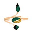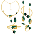 Υπέροχο Χειροποίητο Σετ με σμάλτο, φύλλα χρυσού και υγρό γυαλί από μέταλλο ορείχαλκου. Χρώμα μέταλλου: Ροζ χρυσό. Φινίρισμα: Γυαλιστερό. Χρώμα Σμάλτου: Πράσινο, μαύρο και φύλλα χρυσού. Αποτελείται από κολιέ, σκουλαρίκια, βραχιόλι και δαχτυλίδι. Ένα σχέδιο εμπνευσμένο από το χρώμα της φύσης. Συμβολίζει την ανάπτυξη την αρμονία και την γονιμότητα. Φοριέται όλες τις Εποχές και ταιριάζει με Βραδινό και Επίσημο ντύσιμο.