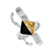 Μοναδικό Χειροποίητο Σετ με σμάλτο, φύλλα χρυσού και υγρό γυαλί από μέταλλο ορείχαλκου. Χρώμα μέταλλου: Επαργυρωμένο. Φινίρισμα: Σαγρέ ματ. Χρώμα Σμάλτου: Μαύρο και φύλλα χρυσού. Αποτελείται από κολιέ, σκουλαρίκια, βραχιόλι και δαχτυλίδι. Είναι ένα σχέδιο εμπνευσμένο από την Αποφασιστικότητα, την Σταθερότητα, και Επιθυμία. Στοιχεία που κάνουν κάθε γυναίκα ξεχωριστή και αναδεικνύουν την προσωπικότητα της. Φοριέται όλες τις Εποχές και ταιριάζει με Βραδινό και Επίσημο ντύσιμο.