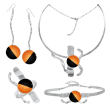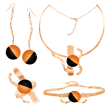 Μοναδικό Χειροποίητο Σετ με σμάλτο και υγρό γυαλί από μέταλλο ορείχαλκου. Χρώμα μέταλλου: Επιχρυσωμένο. Φινίρισμα: Σαγρέ ματ. Χρώμα Σμάλτου: Μαύρο και ροδακινί. Αποτελείται από κολιέ, σκουλαρίκια, βραχιόλι και δαχτυλίδι. Το Μαύρο Συμβολίζει δύναμη, κομψότητα και μυστήριο. Το Χρώμα ροδακινί Συμβολίζει την ισορροπία, ενεργεία και δημιουργία. Φοριέται όλες τις Εποχές και ταιριάζει με Βραδινό και Επίσημο ντύσιμο.