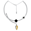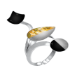 Υπέροχο Χειροποίητο Σετ με σμάλτο, φύλλα χρυσού και υγρό γυαλί από μέταλλο ορείχαλκου. Χρώμα μέταλλου: Επαργυρωμένο. Φινίρισμα: Γυαλιστερό. Χρώμα Σμάλτου: Ασημί, μαύρο και φύλλα χρυσού. Αποτελείται από κολιέ, σκουλαρίκια, βραχιόλι και δαχτυλίδι. Ένα σχέδιο εμπνευσμένο από την Πειθαρχία τον Πλούτο και τον Καθρέφτη της Ζωής, που αναδεικνύει τα έντονα χαρακτηριστικά στην προσωπικότητα μιας γυναίκας. Φοριέται όλες τις Εποχές και ταιριάζει με Καθημερινό και Βραδινό ντύσιμο.