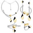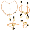 Υπέροχο Χειροποίητο Σετ με σμάλτο, φύλλα χρυσού και υγρό γυαλί από μέταλλο ορείχαλκου. Χρώμα μέταλλου: Επιχρυσωμένο. Φινίρισμα: Γυαλιστερό. Χρώμα Σμάλτου: Μπεζ, μαύρο και φύλλα χρυσού. Αποτελείται από κολιέ, σκουλαρίκια, βραχιόλι και δαχτυλίδι. Ένα σχέδιο που συμβολίζει τον σεβασμό, συγκεκριμένα είναι ιδανικό για μια ταραχώδη περίοδο στη ζωή κάποιου για να του φέρει ηρεμία και σιγουριά. Φοριέται όλες τις Εποχές και ταιριάζει με Βραδινό και Επίσημο ντύσιμο.